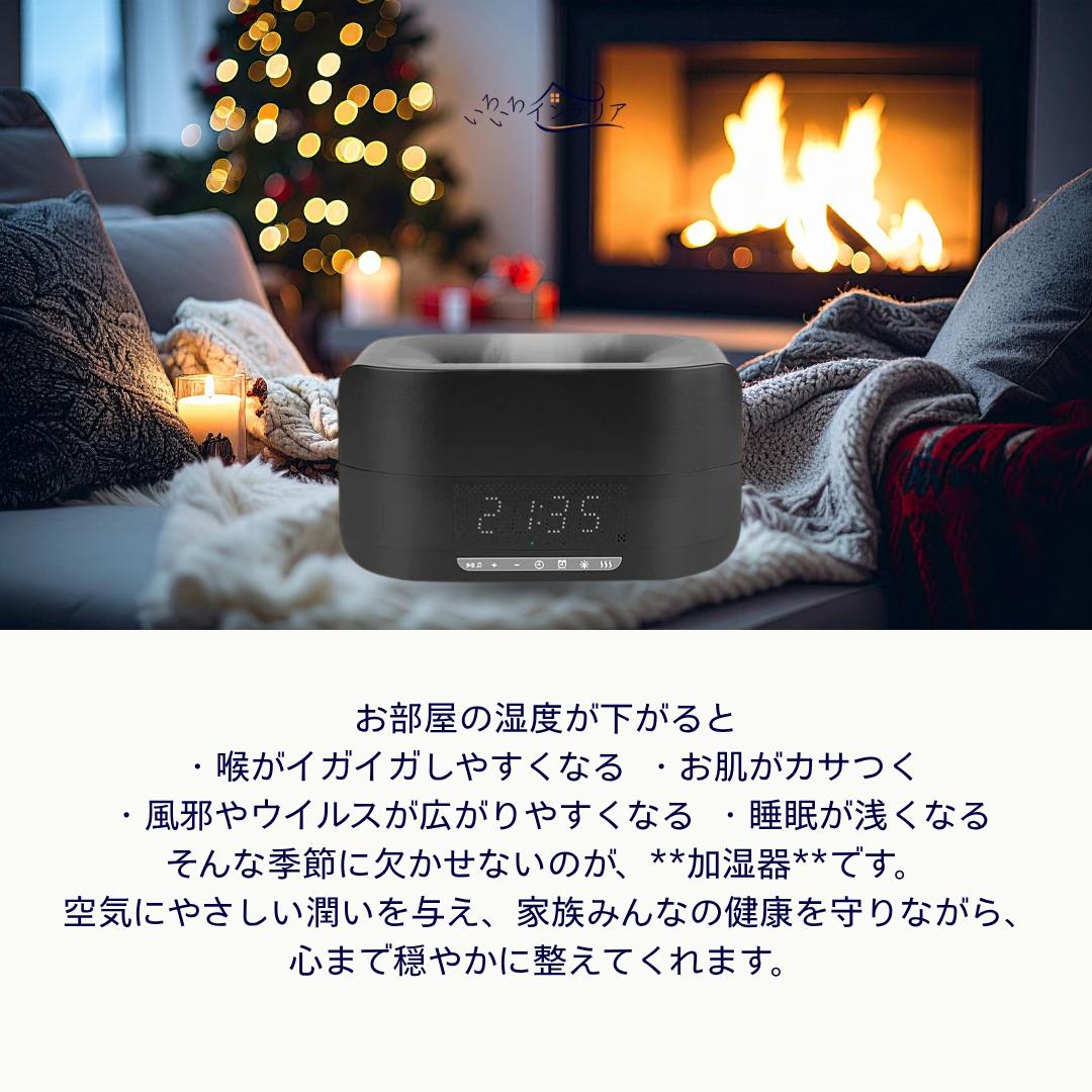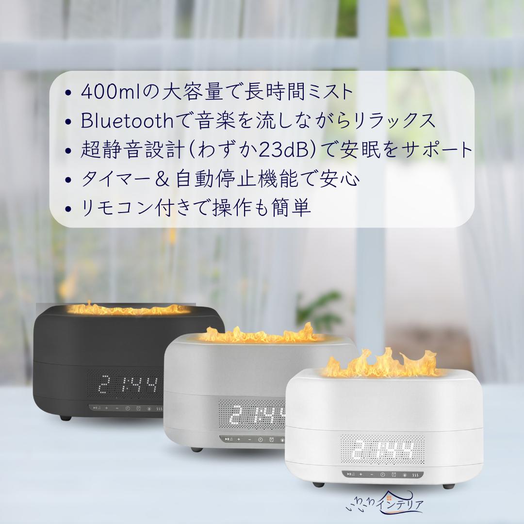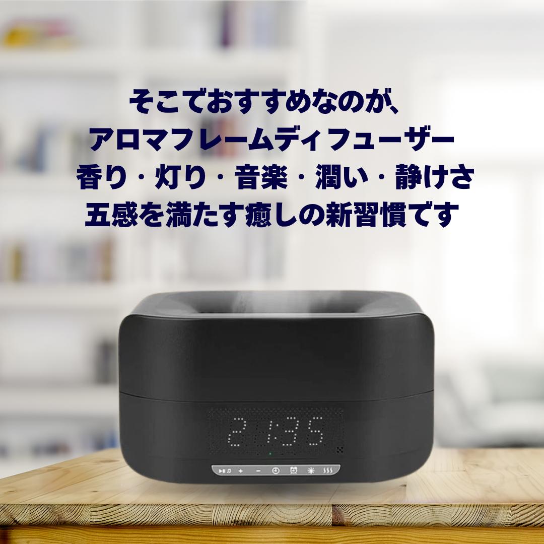 ぬくもり™*は、ゆらめく炎のようなLEDライト、アロマディフューザー、Bluetoothスピーカーの3つの機能を備えた、癒しの空間を演出する多機能アイテムです